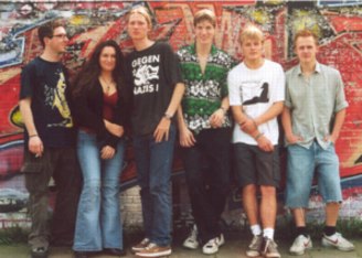 aus Bremerhaven, fünf junge Männer mit Sängerin, mit zeitgenössischem